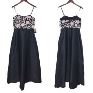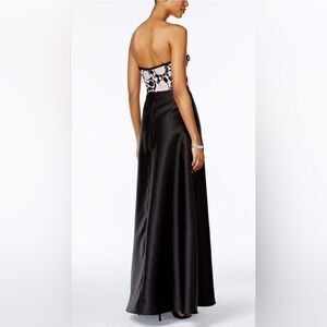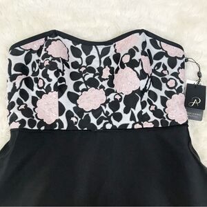 Adrianna Papell Black Pink Floral Strapless Full Length Evening Gown