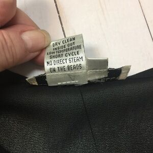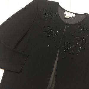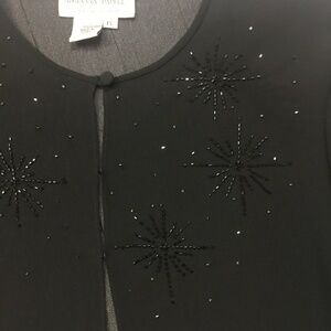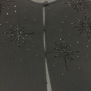Classic sheer evening jacket with top button and hook & eye closure, small shoulder pads, and hand-beaded starbursts.  Excellent pre-owned condition.