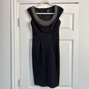 ADRIANNA PAPPEL BLACK EMBELLISHED DRESS