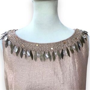 ADRIANNA Papell Rose Gold Beaded Neckline Sleeveless Shift Dress | Size 6