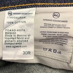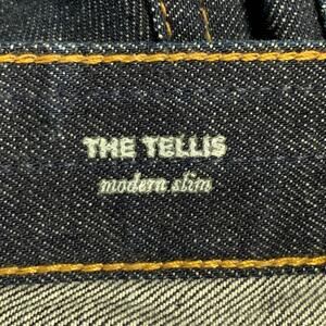 ADRIANO GOLDSCHMIED "The Tellis" jeans in a navy cotton woven selvedge denim featuring a slim fit, five pockets, and button fly closure.
