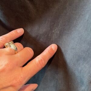 Pointing out a couple flaws- small tear on right leg and a couple spots of discoloration