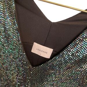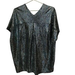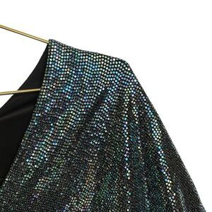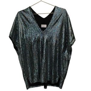 ADRIENNE Bat Wing V Neck Glitter Sequin Top Blouse Size L