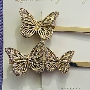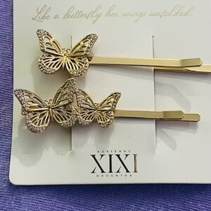 ADRIENNE HOUGHTON XIXI GOLD TONE BUTTERFLY 2 PAIR OF BOBBY PINS