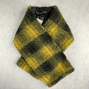 ADRIENNE LANDAU Pull Through Scarf Faux Fur Black Checked Fleece Womens One Size