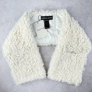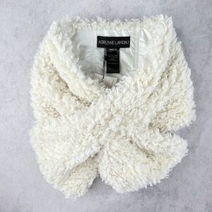 ADRIENNE LANDAU Pull Through Scarf Ivory Shaggy Faux Fur Sheepskin Womens OS
