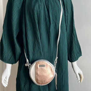 ADRIENNE LANDAU Round zipper Cross Body Silver Rose Gold Pony Shoulder Bag Purse