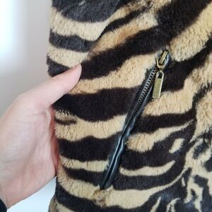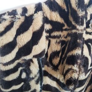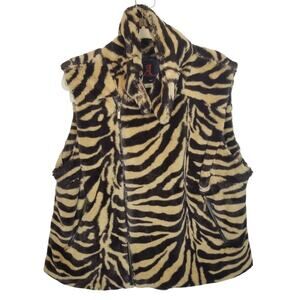 ADRIENNE LANDAU Womens Faux Fur Leopard Print Animal Vest Full Zip Mob Wife 1X
