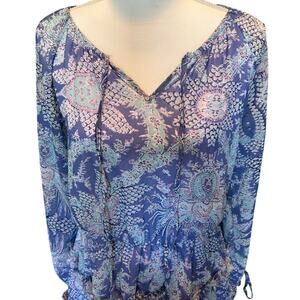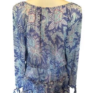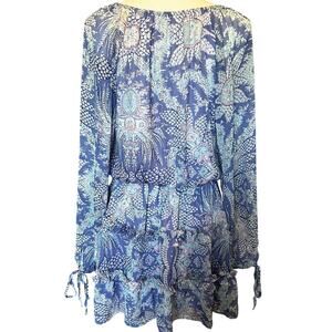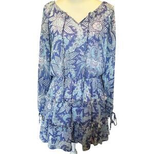 ADRIENNE Paisley Sheer Ruffle Long Sleeve Mini Dress in Periwinkle-Size S