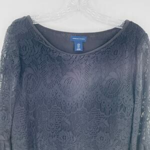 ADRIENNE VITADINI Black Lace Ruffle Bell Sleeve Scoop Neck Crop Top Blouse S