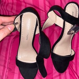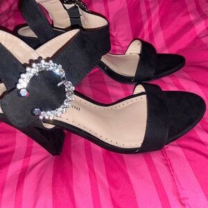 Shoes ADRIENNE VITTADINI number 6.5 American Black corduroy The brooch a shiny ring Heel of 20 cms