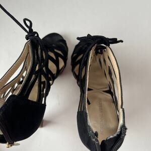 Black Adrienne Vittadini Anjolie 1 Suede Lace-up Strap Web Pump Heel Sandals Shoes