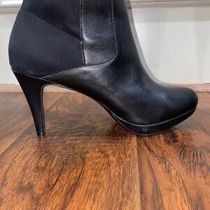 ADRIENNE VITTADINI Black Leather 9.5 Knee High Boots 3.5” Stiletto Full Zipper