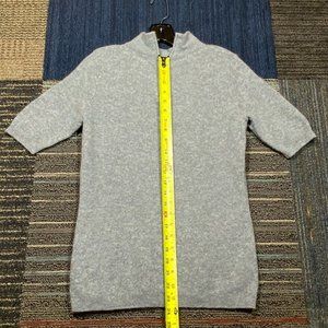 ADRIENNE VITTADINI Cashmere Womens LARGE Sweater Short Sleeve Gray Shirt Zip Up