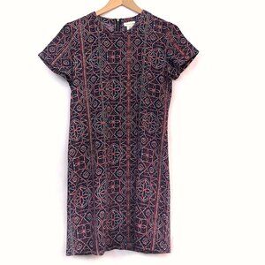 ADRIENNE VITTADINI Navy Blue Red White Geometric Print Short Sleeve Shift Dress