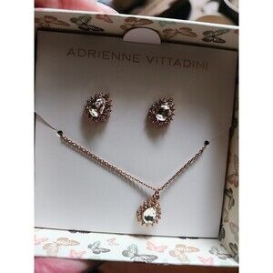 ADRIENNE VITTADINI Necklace Earring Set CZ Rose/gold- Colored NIB