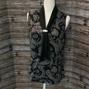 ADRIENNE VITTADINI SLEEVELESS DRAPED SCARF V-NECK TOP