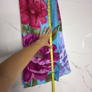 ADRIENNE VITTADINI Silk Scarf Floral Teal Rectangle 11”x54” Art To Wear Resort