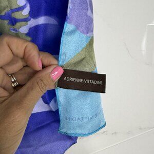 The product is an ADRIENNE VITTADINI silk scarf in a floral teal design, measuring 11" x 54". This stylish rectangle scarf is perfect for women looking to add a touch of art to their wardrobe. The colorful and vibrant pattern makes it an ideal accessory for summer events or seaside resorts. Made from luxurious silk, this scarf is sure to elevate any outfit with its unique design and elegant material.