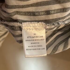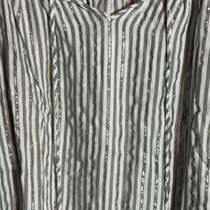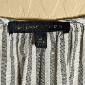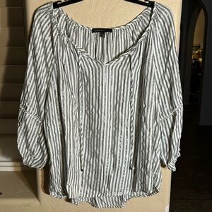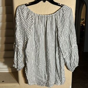 ADRIENNE VITTADINI Stripes White and Silver Boho Coastal Beachy Blouse