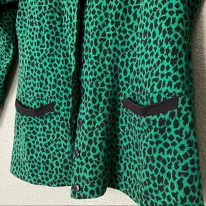 • features: This vintage ADRIENNE VITTADINI cardigan sweater jacket features a vibrant green and black leopard print pattern. The 100% cotton knit offers comfortable wear, while the button-up closure and two front pockets with black contrast trim add a polished detail. A perfect statement piece for a Y2K, dark academia, or grunge aesthetic.