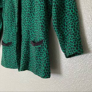 Vintage Animal Print Leopard Print Adrienne Vittadini Cardigan Jacket Small Green Black 100% Cotton Button Up Knit Sweater Boho Bohemian Longline Oversized Cozy Flowy Sassy Trendy Y2K 90s Dark Academia Grunge Indie Statement Piece Preppy Retro Cottagecore Witchy Whimsigoth Light Academia Goblincore EGirl Streetwear Party Festival Versatile Cheetah Maximalist Gorpcore Regencycore Coquette