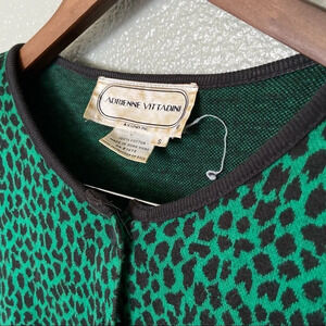 ADRIENNE VITTADINI Vintage Leopard Cardigan Small Green Black Y2K