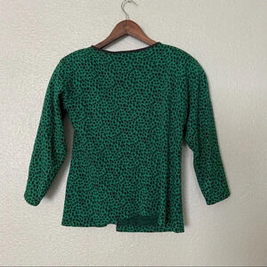 ADRIENNE VITTADINI Vintage Leopard Cardigan Small Green Black Y2K Dark Academia