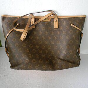 ADRIENNE VITTADINI XL SIGNATURE Padded Laptop Tote Bag Brown Tan Logo