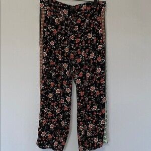 ADRIENNE Vittadini Size Medium Floral Wide Leg Pant Waist Tie Pockets
