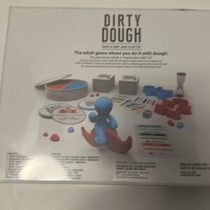 Contents: “filthy” red dough, “disgusting” blue dough, “dirty” dough tub, “nasty” die, “kindly” sand timer, “obscene” people molds, “gross” challenge tiles, “indecent” clue cards, and “relatively clean” instructions