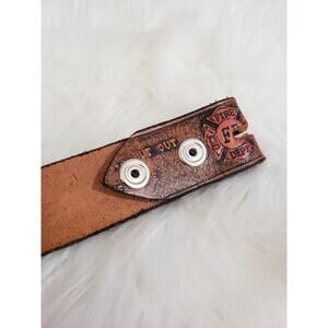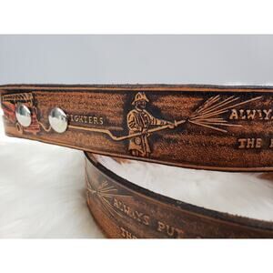 ADULT SMALL Vintage Firefighter Tooled Leather Belt Handmade