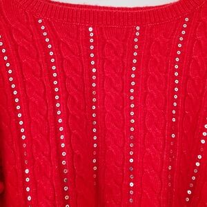 ADYSON PARKER L Red Boxy Crop Sweater Sequins Cable Knit LS Relaxed Fit Casual