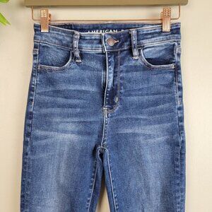 AE 0 Super Hi Rise Jegging Dark Wash Distressed Skinny Ripped Stretch Jeans