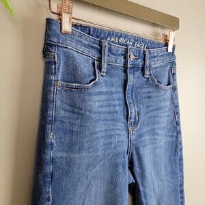 AE 0 Super Hi Rise Jegging Skinny American Eagle Medium Wash Stretch Jeans Short