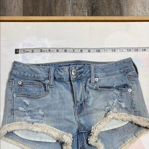 AE 4 shortie pom pom fringe distressed jean shorts