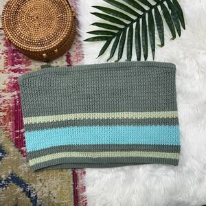 Elevate your wardrobe with this beautiful American Eagle crochet knit crop tank. The green and blue color stripes creates a vibrant, boho-chic aesthetic that's perfect for warm weather. Its strapless design makes it a stylish choice for various occasions. Pair it with your favorite high-waisted jeans, shorts, or a flowy skirt for a complete and fashionable look. Whether you're heading to a music festival, a beach day, or a casual outing, this crop tank will surely turn heads and make you feel fabulous.