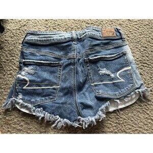 AE AMERICAN EAGLE HI RISE SHORTIE STRETCH WOMENS JEAN SHORTS SIZE 8