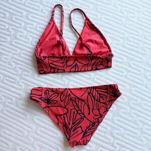 ❤️ AE Aerie Bikini Set Deep Orange Navy Floral Pattern Women’s Size SP
