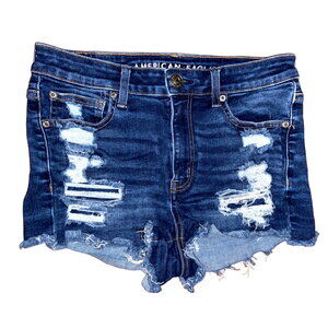 AE American Eagle Hi-Rise Shortie Ripped Patched Cut Off Jean Shorts Size 6