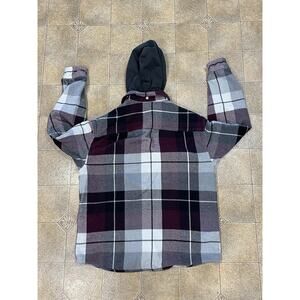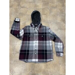 AE American Eagle Men’s Sz Medium Plaid Flannel Shirt Jacket With Removable Hood