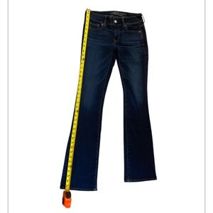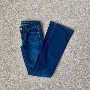 American Eagle Jeans size 2. Kick Boot style. Dark wash. Good pre-owned condition. These fit a bit long. I am 5’7 and they hit the ground.