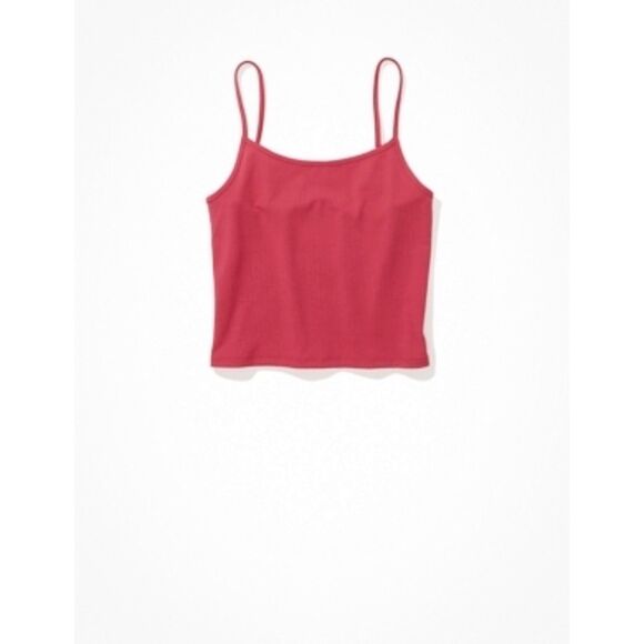 AE American Eagle cropped cami knit ribbed tank crop top shirt red berry pink M