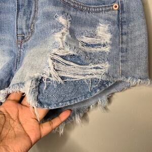 AE Blue Lace Distressed Hi Rise Festival Shorts 2