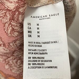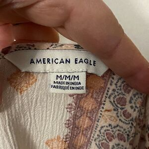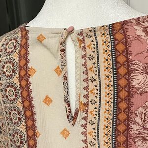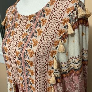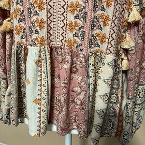 AE Boho Patterned Tassel Balloon Sleeve Peasant Peplum Top Sz M Festival Artsy