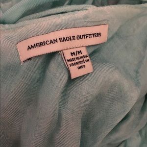 Soft gauzy fabric, a bit shorter in length, but now quite crop. Fun double straps. Sun washed aqua blue. NWOT