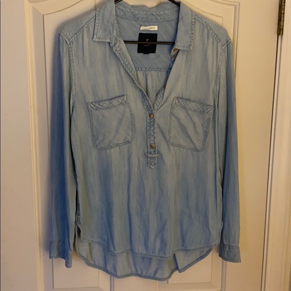 Denim look with soft material. Worn maybe once or twice.