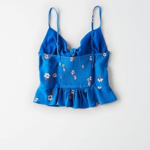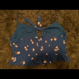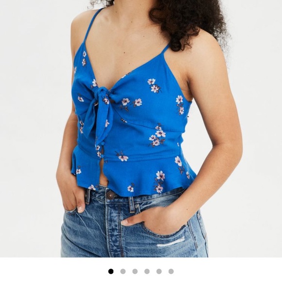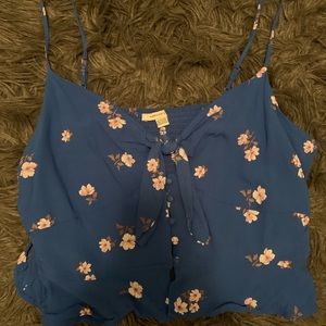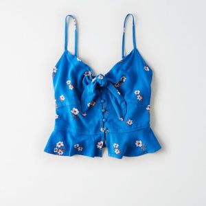 Cobalt blue with floral design tie front cami. Stretchy because of back. Worn once.