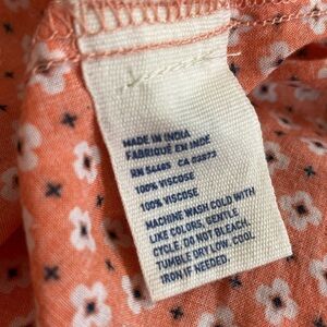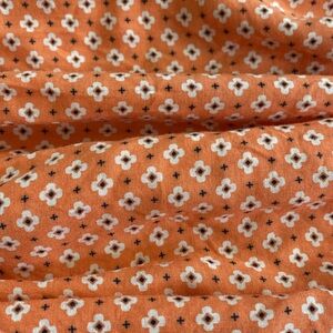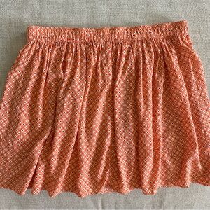 Lightweight coral circle skirt with geometric floral pattern and comfortable elastic waistband. Ideal for everyday wear.