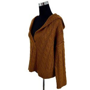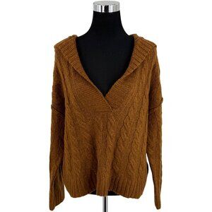 AE Cottagecore Brown Cable Knit Academia Hooded Sweater Chunky V-Neck M